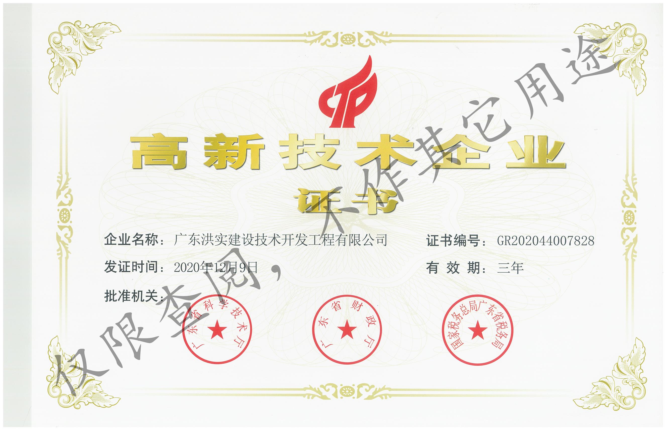 国家级高新技术企业证书